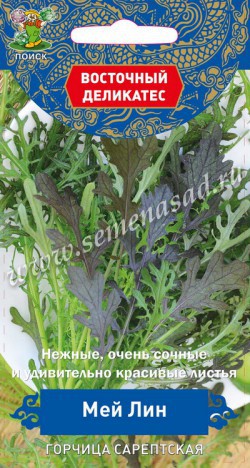 Прекрасное салатное растение. Среднеспелый сорт, начало хозяйственной годности на 22-25-й день после полных всходов. Масса розетки листьев 40-55 г, высота розетки 20-26 см, диаметр 18-23 см. Лист обратнояйцевидный, сильнорассеченный, окраска темно-зеленая с сильным антоцианом. Цветки интенсивно желтые. Вкус приятный горчичный. Урожайность зелени 4,1 кг/м?. Похожие товары