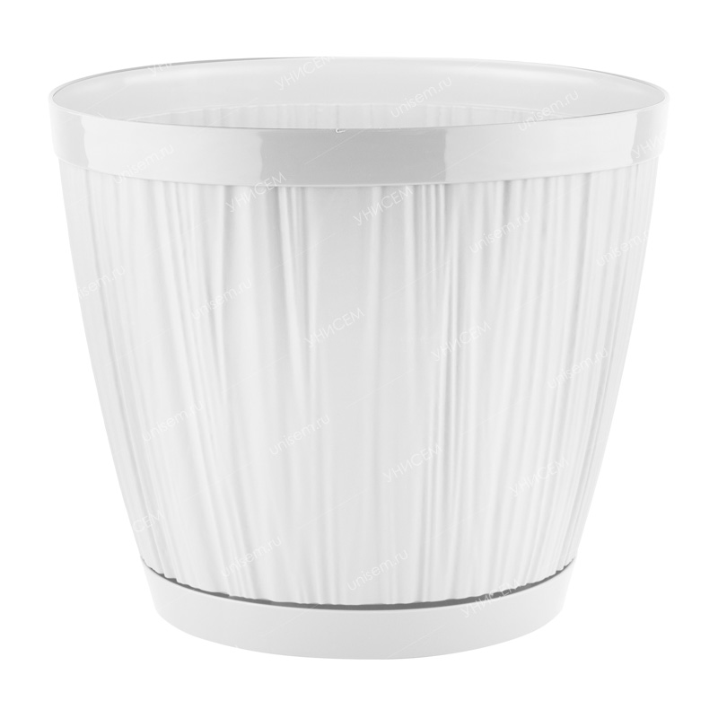 Ёмкость выполнена из пластика, поставляется в комплекте с поддоном для отвода воды. Поддон надежно крепится к основанию, что предотвращает протечку жидкости. Многие цветоводы выбирают изделия именно из пластика, потому что он легкий, прочный, долговечный и устойчивый к повреждениям материал. Такой горшок белого цвета станет неповторимой деталью, которая украсит и оживит интерьер любого дома. Похожие товары