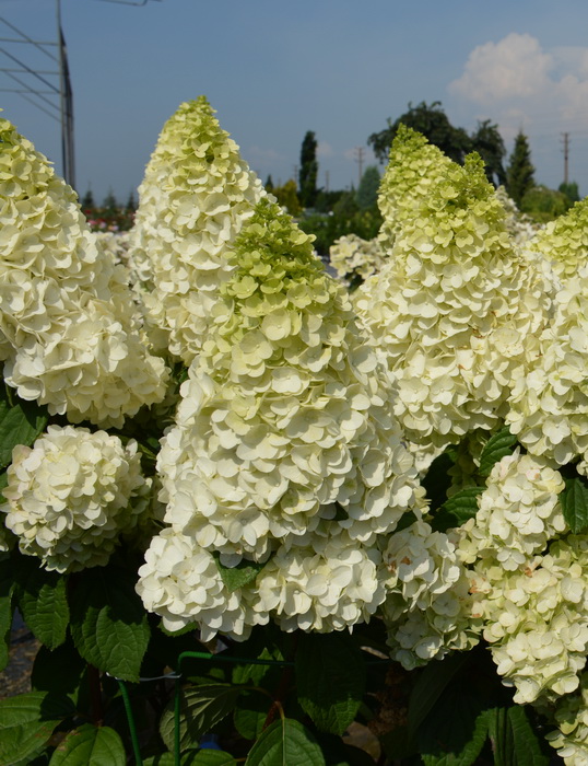 Куст высотой и диаметром 1,2-1,5 м. Стерильные цветки вначале светло-зелёные, затем в основании соцветия приобретают бело-кремовую окраску. Плодущие цветки почти незаметные. Соцветия красивые, плотные, конусовидные, в них могут присутствовать листья. Цветение в июле-сентябре. Место солнечное или полутенистое. Почва влажная, дренированная. Зона 3 (до -34°С). Похожие товары