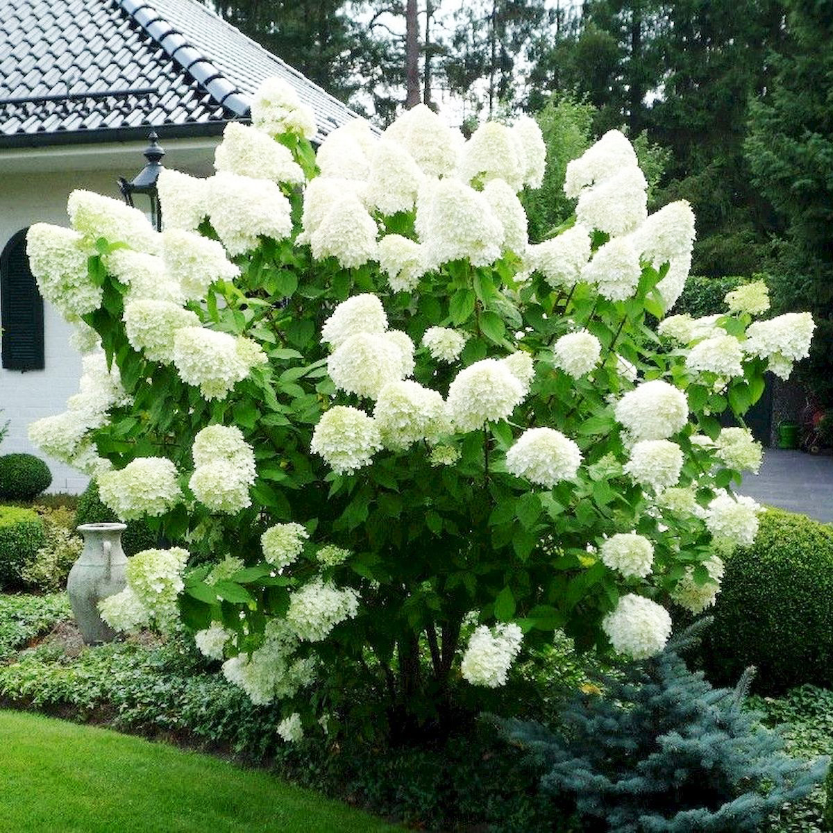 Гортензия метельчатая "Polar Bear" - эффектный сорт. Цветки бело-зеленые, к осени слегка розовеют. Соцветия очень плотные, конические, длиной до 40 см, состоят в основном из очень крупных стерильных цветков. Высота взрослого растения - около 2,0 м. Куст крупный раскидистый. Цветет с середины июля до заморозков. Похожие товары