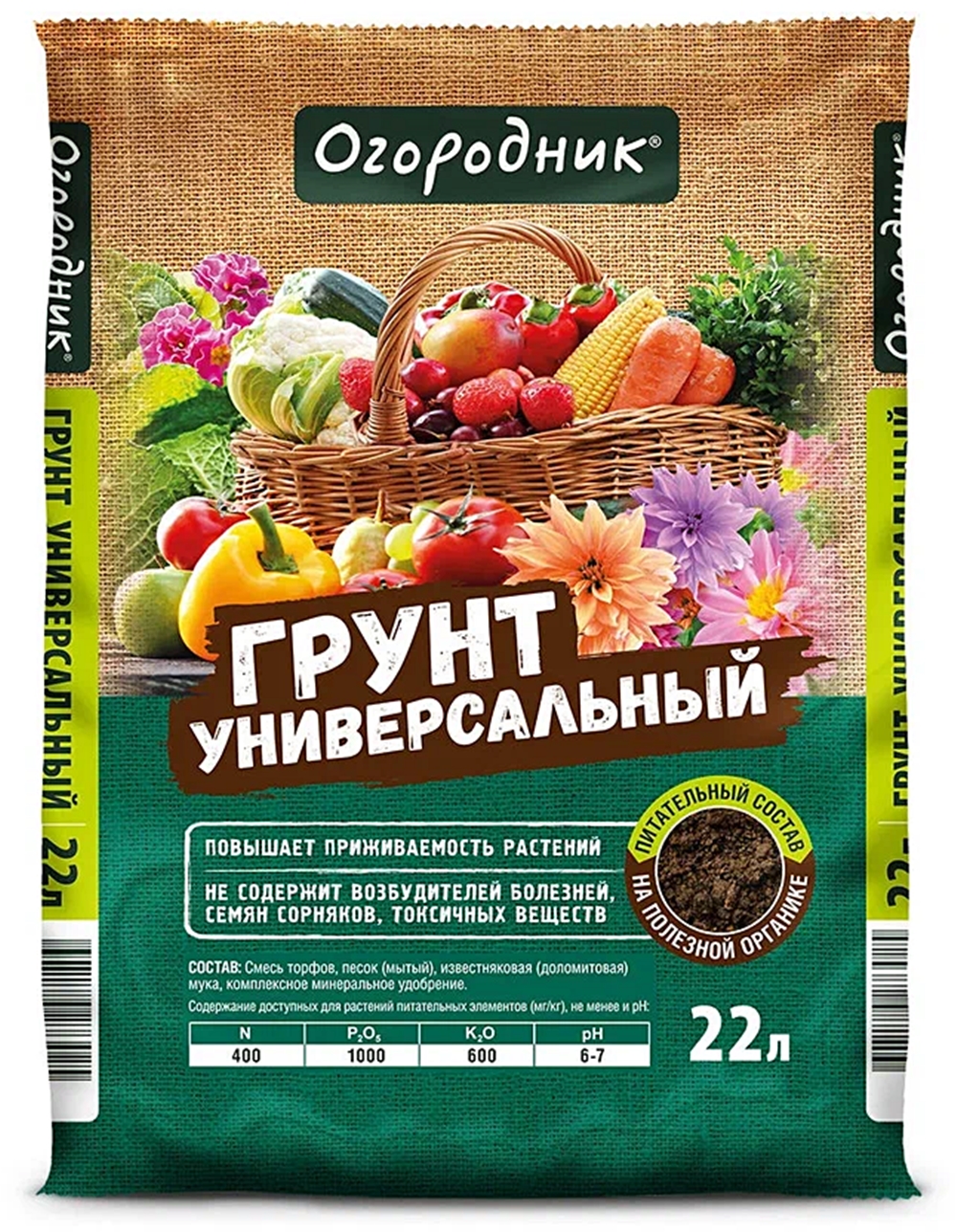 Состав: Верховой торф, низинный торф, песок, известняковая (доломитовая) мука, комплексное минеральное удобрение.Азот Область применения/описание: Полностью готовый к применению универсальный питательный грунт, содержащий полный набор питательных веществ, необходимых для полноценного роста и развития растений. Применяется: Для выращивания огурцов, помидоров, перцев, капусты Для выращивания корнеплодов картофеля, моркови, свеклы, редиса Для выращивания зеленых культур: лука, укропа, петрушки Для выращивания садово-ягодных культур, однолетних и многолетних цветов Для выращивания комнатных растений Преимущества: Универсальный продукт для всех видов растений Изготовлен по передовым технологиям на базе последних исследований в области агрохимии растений Легкодоступный растениям питательный комплекс на гуматсодержащем сорбенте Ускоряет рост и развитие растений Увеличивает потенциальную урожайность Не содержит жизнеспособных семян сорняков Не содержит патогенной микрофлоры Эффективность подтверждена тестами Похожие товары