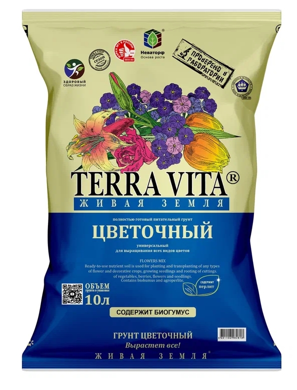 Полностью готовый питательный грунт Terra Vita применяется для посадки и пересадки всех видов цветочных и декоративных культур, выращивания рассады и укоренения черенков. Продукт изготовлен на основе торфов различной степени разложения с добавлением органических субстратов, природных структурирующих компонентов, макро- и микроэлементов. Улучшает всхожесть семян, приживаемость рассады. Обеспечивает ускорение роста растений. Восстанавливает плодородие и естественный биоценоз почвы. Улучшает декоративные качества цветов. Похожие товары