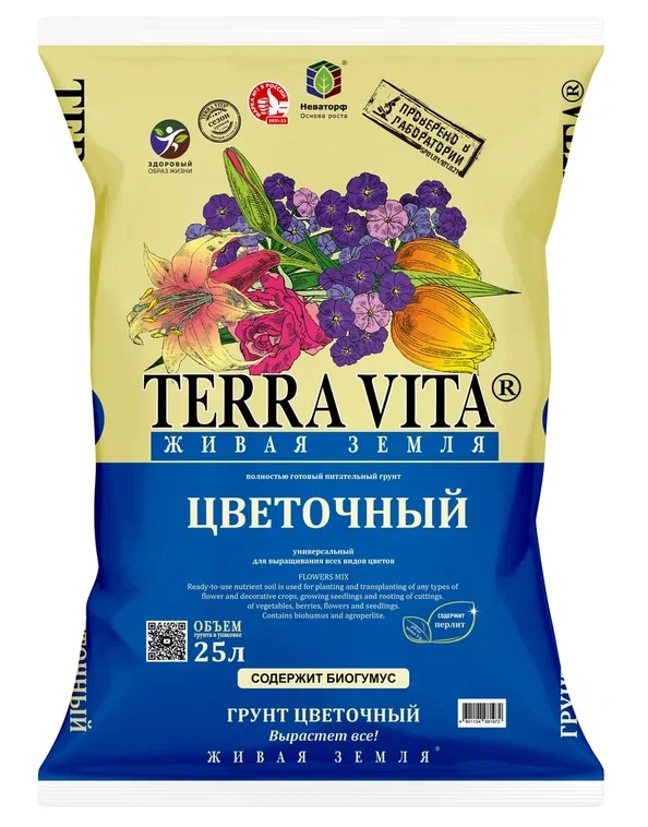 Грунт цветочный "Живая Земля" - полностью готовый питательный торфяной грунт для выращивания рассады и укоренения черенков всех видов, садовых и комнатных цветочных и декоративных культур. Улучшает всхожесть семян, приживаемость рассады и декоративные качества цветов. Обеспечивает ускорение роста растений. Восстанавливает плодородие и естественный биоценоз почвы. Похожие товары