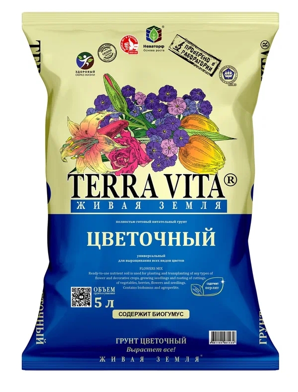 Грунт цветочный "Живая Земля" - полностью готовый питательный торфяной грунт для выращивания рассады и укоренения черенков всех видов, садовых и комнатных цветочных и декоративных культур. Улучшает всхожесть семян, приживаемость рассады и декоративные качества цветов. Обеспечивает ускорение роста растений. Восстанавливает плодородие и естественный биоценоз почвы. Похожие товары