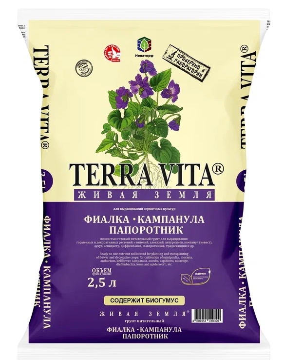 Грунт Живая земля Фиалка-Кампанула-Папоротник 2,5л.