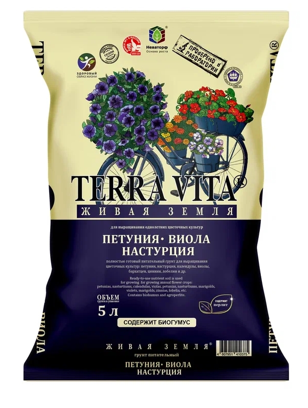 Грунт Живая земля Петуния-Виола-Настурция 5л.