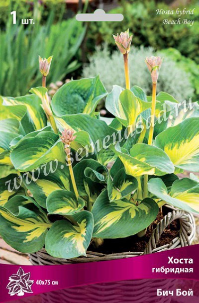 Хосты - многолетние растения с компактным или коротковетвистым корневищем. Листья прикорневые, на черешках, сравнительно крупные, разной окраски и формы: зеленые, голубовато-сизые, пестрые, от узколанцетных до широкояйцевидных. Цветоносы почти не облиственные, крупные, у некоторых видов до 120см высотой. Цветки воронковидные или воронковидно-колокольчатые, сиреневые, фиолетовые, реже белые, собраны в кистевидное, часто однобокое соцветие. Месторасположение: теневыносливы, но есть гибриды, способные расти под лучами солнца. На одном месте могут расти более 20 лет. Почва: предпочитают слегка кислые, влажные почвы. Размножение: делением куста. Кусты делят весной, до начала развертывания листьев. Разрастается медленно. Использование: эффектны в одиночных посадках на фоне газона, особенно пестролистные формы. Подходит для бордюров, рабаток, смешанных групп. Красивы около водоемов. Бич Бой- плотные листья с желто-зеленым центром и темно-зеленой каймой, цветы белые, устойчива к повреждению слизнями. Похожие товары