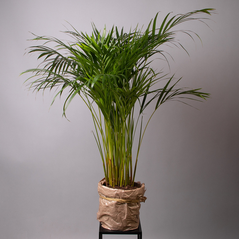 Роскошная пышная комнатная пальма. В компании с этой пальмой в помещении офиса,кафе или квартиры становится уютно и стильно. А главное Хризалидокарпус это отменный помощник в очищении и увлажнении воздуха. Этот вид пальмы имеет тонкий стебель, на котором располагаются перистые раскидистые листья ярко-зеленого цвета. Хризалидокарпус Лутесценс не смотря на свою экзотичность, отлично приживается в домашних условиях и может вырастать до 4 м в высоту. Для Ареки подойдет светлый подоконник, места с рассеянным светом и полутень. Но от прямого солнца ее нужно защищать, чтобы не повредились листочки. Температура Это теплолюбивое растение, которое прекрасно переносит температуру до +35 градусов. Взрослая Арека может выдерживать кратковременные снижения температуры до 0 градусов. Опасны сквозняки. Полив Полив должен быть умеренным, чтобы не спровоцировать загнивания корневой системы. Нельзя допускать застаивания воды в поддоне, а также попадания влаги на крону. Используйте только отстоянную водичку. Влажность Рекомендуется обеспечить высокую влажность, чтобы не пострадала декоративность цветочка. Похожие товары