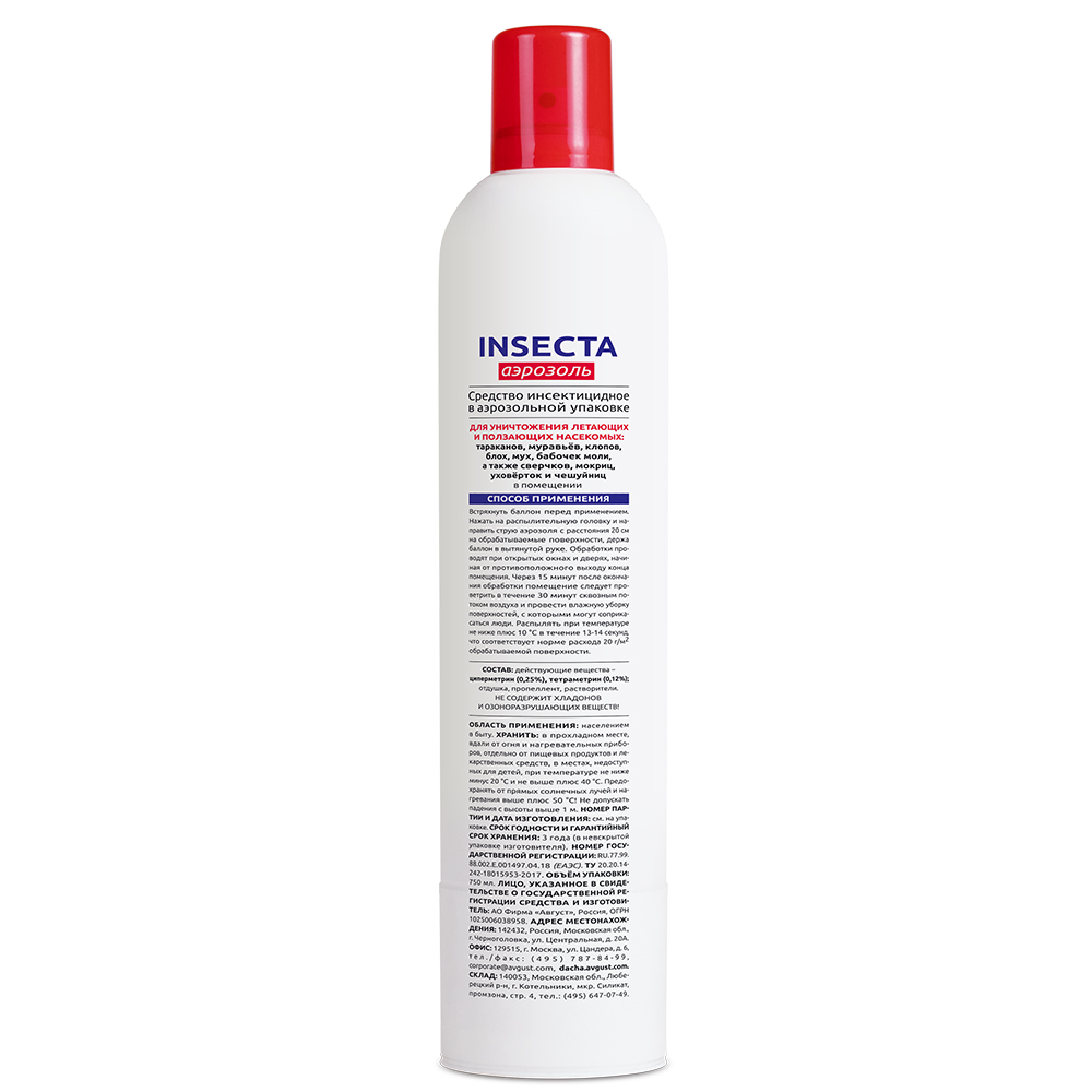 Для уничтожения летающих и ползающих насекомых. Удобная форма в виде аэрозоля. Обладает мгновенным действием. Не оставляет пятен на коврах и мебели. Действует на широкий спектр вредителей, таких как тараканы, муравьи, блохи, клопы, мухи, бабочки моли, сверчки, мокрицы, уховертки, чешуйницы. Похожие товары