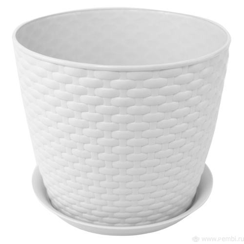 Кашпо РОТАНГ D210 мм 4,7л с поддоном Белый ротанг М3083 (М-пласт.)
