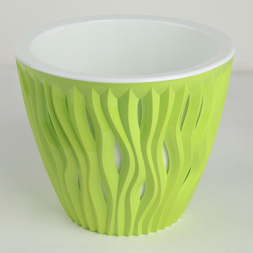 С объёмной волнообразной текстурой станут украшением любого интерьера - от сдержанного офисного до уютного домашнего. Кашпо представлены в самых разных объёмах, а потому подойдут для больших и маленьких растений, простых цветов и сложных флористических композиций. Конструкция предусматривает удобные технологичные ручки, которые упрощают уход за растением, а дренажная вставка обеспечивает отвод воды от грунта и позволяет дышать корневой системе.Объем:2,25л Похожие товары