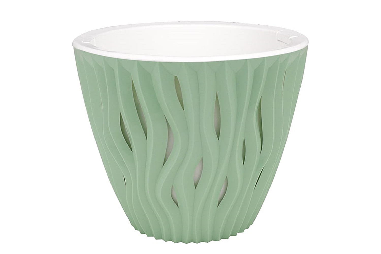 Горшок классической формы с дренажной вставкой. Наличие дренажной вставки упрощает уход за растением, а также защищает растение от избытка воды и обеспечивает вентиляцию корней. Всегда учитывайте размер кроны и корневой системы растения (при разрастании большое растение способно повредить маленький горшок); Берегите изделие от воздействия прямых солнечных лучей, чтобы кашпо и горшки не выцветали; Держите кашпо и горшки из пластика подальше от нагревающихся поверхностей. Цвет: мята. Диаметр: 17 см Высота: 17 см Объём: 2.25 л Похожие товары