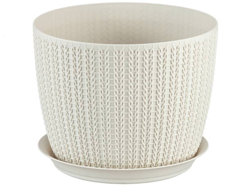 Кашпо Вязание D135мм с подставкой Белый ротанг М3119 (М-пласт.)