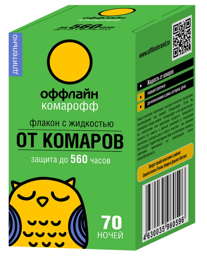 Средство Комарофф оффлайн "Длительно" - предназначено для бережной защиты помещений от комаров, москитов и других летающих насекомых на 70 ночей, даже при открытых окнах! Высокий результат продукта достигается за счет двухкомпонентного состава - праллетрин и трансфлутрин (ДВ- 0,95%). Специально разработанная рецептура, гарантирует безопасность и эффективность использования. Преимущества: - Быстрый эффект за 5-10 минут. - Без запаха. - Флакон изготовлен из прозрачного, небьющегося материала. Объем флакона: 45 мл. Похожие товары