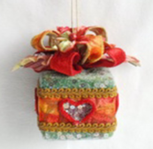 Коробочка изумрудн. с красн.орнаментом и цветочн.бантиком, малая TLN1573