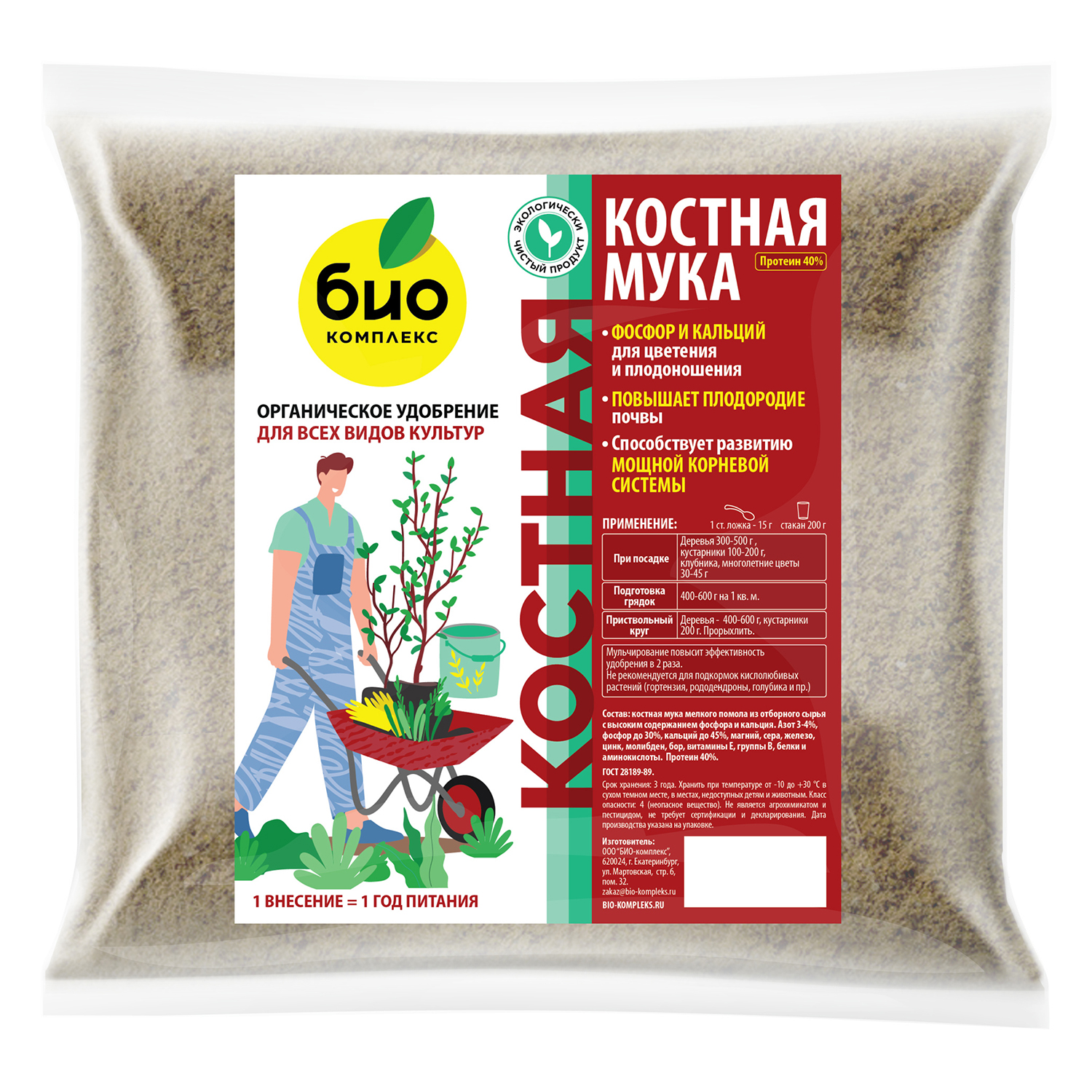 Костная мука – высокоэффективное комплексное фосфорно-кальциевое органическое удобрение для всех видов культур. Полезные свойства: повышает плодородие почвы природный источник хорошо усвояемых растением фосфора и кальция 1 внесение = 1 год питания благодаря постепенному разложению в грунте экологичность и безопасность - не образует нитраты в овощах и ягодах Видимый результат: мощная корневая система интенсивное цветение декоративных растений высокая урожайность плодовых культур плоды - крупнее и ароматнее Похожие товары