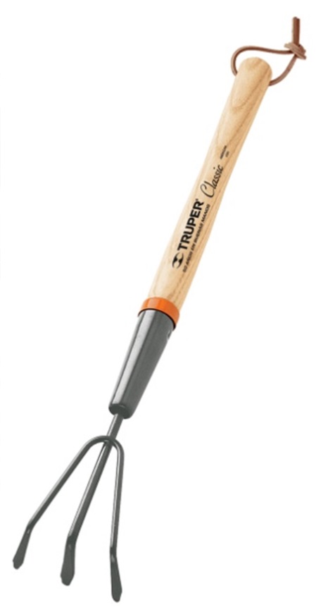 Садовый культиватор Truper GTL-CV 15036 используется для ручной аэрации почвы на грядках и клумбах. Инструмент прост и удобен в работе. Он состоит из металлической рабочей части с тремя зубцами и деревянной ручки, которая надежно закреплена в манжете. Похожие товары