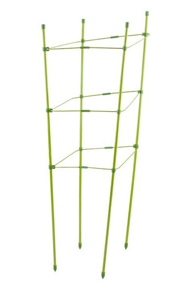 Кустодержатель состоит из 4-х колышков и соединяющих их пластиковых коннекторов (12 шт) на 3-х уровнях. Время сборки - 1-3 минуты. В комплект также входят наконечники (4 шт) для декора кустодержателя. Материал: металл в пвх покрытии+пластив. d-11 мм, высота 190 см. Похожие товары