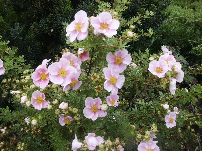 Лапчатка кустарниковая "Пинк Квин" - это необычайно выносливый, невысокий, густой кустарник со стелющимися побегами, около 0,6м высотой. Листья перистые, из 3-7 эллиптических листочков, светло-зеленого цвета, осенью становятся золотисто-желтыми. Период цветения Пинк Квин, как и других представителей лапчаток, очень большой: с мая по октябрь. Растет умеренно быстро. Светолюбива, выносит полутень, морозостойка, дымогазоустойчива. Неприхотлива к почвам и влажности, хорошо переносит обрезку и, более того, нуждается в ней для поддержания интенсивного цветения и декоративной формы кроны. Похожие товары