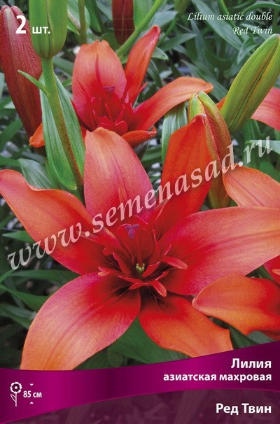 Лилии - многолетние травянистые, луковичные растения. Луковицы яйцевидной или округлой формы, 2-20см в диаметре, состоящие из отдельных сочных, незамкнутых чешуи, прилегающих друг к другу более или менее плотно. Стебли прямые, густо облиственные, зеленые, темно-пурпуровые или с темно-коричневыми штрихами, высотой 30-250см. У отдельных видов на стеблях, в пазухах листьев развиваются воздушные луковички — бульбочки, которые используют для размножения. Листья сидячие или черешковые, от 2-3 до 20см длиной, расположены в очередном порядке, реже мутовчато. Цветки одиночные или собраны по 2-4 в пирамидальные или зонтиковидные соцветия. Окраска белая, красная, оранжевая, розовая, сиреневая или желтая, большей частью с крапинками, полосками или пятнышками на внутренней стороне листочков околоцветника. Месторасположение: предпочитают солнечные, теплые, слегка затененные места. Почва: любая хорошо дренированная почва, богатая питательными веществами, рыхлая, песчано-глинистая, известкованная. Посадка: в сентябре, на глубину 15-20см. Размножение: клубнелуковицами и семенами. Использование: в групповых посадках, миксбордерах, клумбах, на срезку. Азиатские гибриды – самый многочисленный раздел, объединяющий более 2000 сортов, перспективных для выращивания повсеместно. Они довольно неприхотливы, отличаются морозостойкостью, быстро и легко размножаются. Цветки разнообразны по форме и окраске. Цветут во второй половине июня-июле. Пригодны для выгонки во внесезонное время. Ред Твин - высота растения 85см, ярко-крансый. Похожие товары