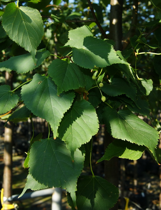 Дерево. Высота 15 м, диаметр кроны 8 м. Крона регулярная, плотная, широкоовальная. Растёт быстро. Период цветения июнь-июль. Цветки жёлтые, ароматные. Медонос. Листья сердцевидные, 6 - 10 см длиной, зелёные, блестящие. Осенью жёлтые. Местоположение: Солнце, полутень, тень. Почва: свежие, плодородные супеси и суглинки. Похожие товары