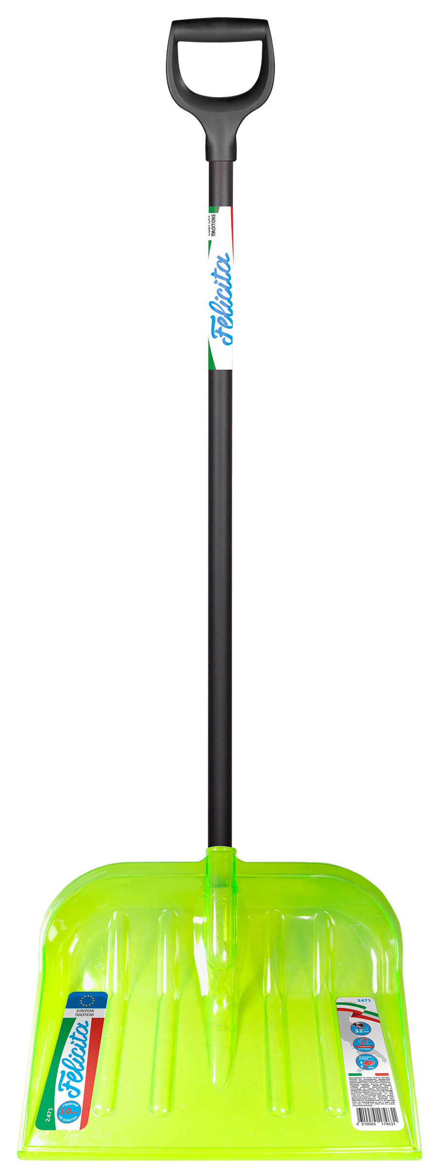 Лопата снеговая ЦИ FELICITA 475х400х1510мм, поликарбонат, с дерев. черенком 2471