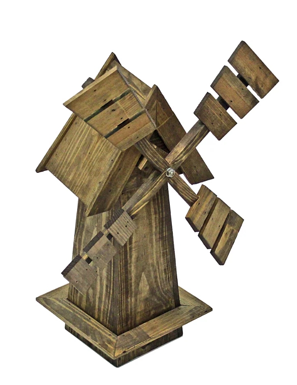 Декоративная фигура из сосны, выполненная в виде мельницы. Ее можно установить в любом удобном для пользователя месте на приусадебном участке. Изделие прекрасно дополнит цветочную клумбу, территорию около крыльца или беседки и т. п. Похожие товары