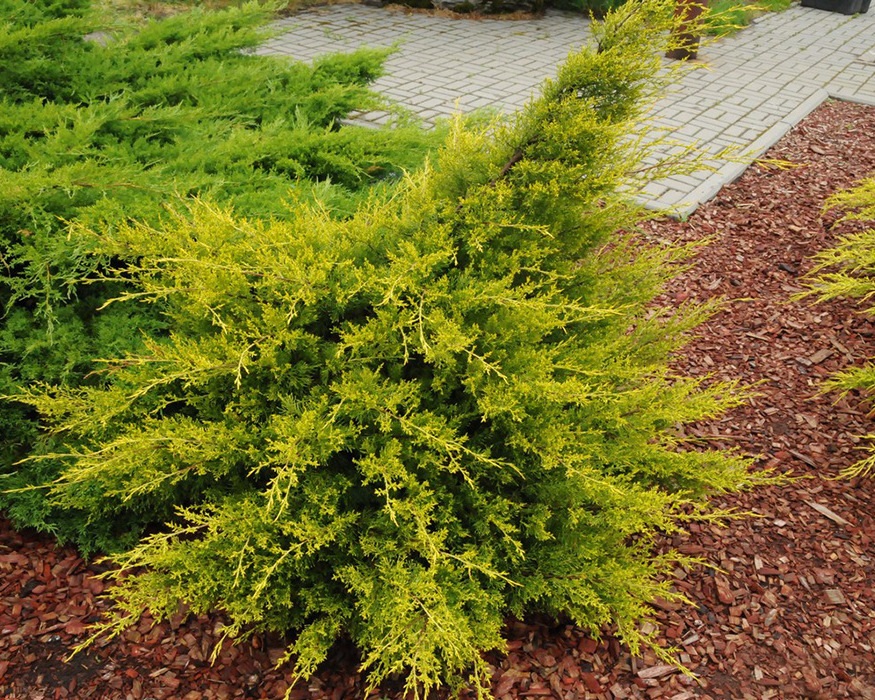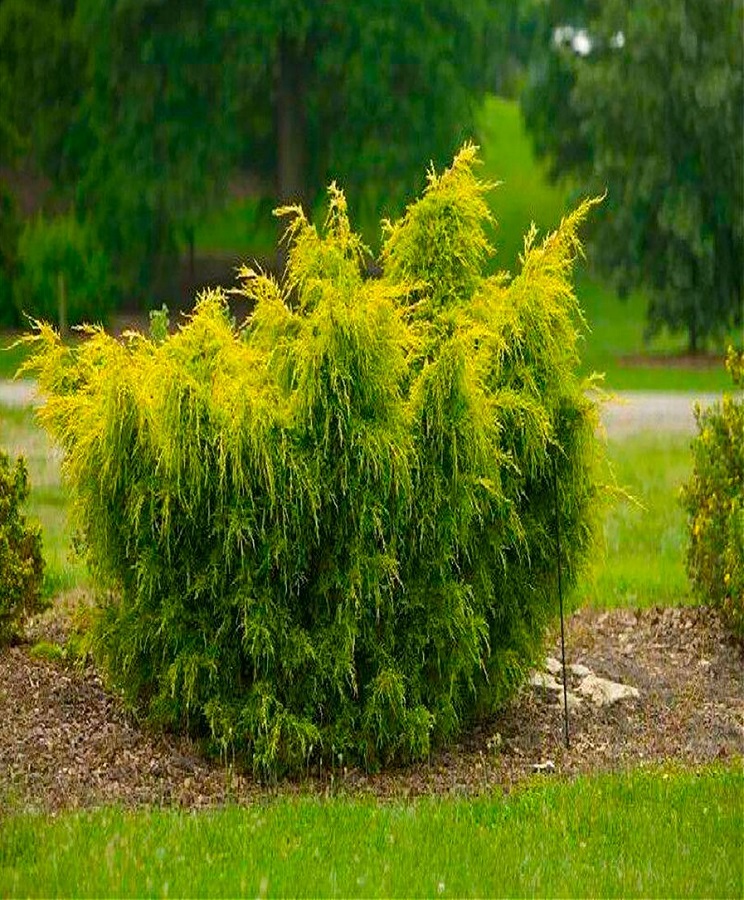 Можжевельник Куривао Голд относится к сильнорослым хвойным кустарникам. Высота десятилетнего экземпляра находится в пределах 1,5–2 м, более взрослые вытягиваются до 3 м. Ветви раскидистые, поэтому диаметр можжевельника достигает 1,5 м. Побеги широкие, растут вверх. Молодые побеги можжевельника китайского Куривао Голд имеют интересную золотистую расцветку, которая выгодно выделяется на фоне зеленых чешуек хвои. На кустах Куривао Голд много мелких шишек. Ветви хорошо переносят стрижку, дают ежегодно до 20 см прироста. Похожие товары