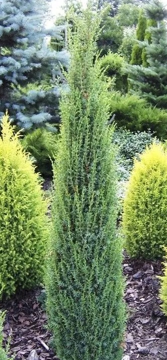 Суецика – это стройное вечнозелёное растение с плотной конусовидной кроной. В высоту оно достигает 4 м, а в обхвате – 0,8 м. К 10-летнему возрасту размеры деревца составят 200-240 см, растёт оно всегда по вертикальному типу. Колоновидная культура имеет прямые побеги со слегка свисающими кончиками. Хвоя большую часть года серо-зелёная, но зимой меняет окрас на зелёно-голубую, что очень интересно контрастирует со снегом. Иголки у хвойника колючие, длина их составляет 0,8-1 см. Дерево растёт со средней скоростью. В год оно подрастает на 0,1 м в высоту и примерно на 5 см в диаметре. Растёт Суецика только в открытом грунте. Похожие товары