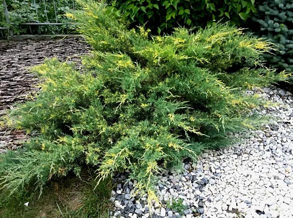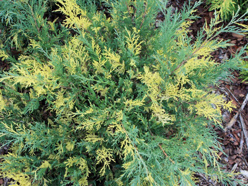 Крона: не плотная, раскидистая, не очень широкая, неправильной формы. Годовой прирост в высоту 8-12 см, в ширину 10-20см. Растет в виде вечнозеленого кустарника до 0,9-1 м высоты и до 1,2- 1,5м в диаметре с сильными диагонально приподнятыми наружу и вверх под углом 45 градусов и реже горизонтально лежащими ветвями. В возрасте 10 лет высота около 0,8м. в высоту и 1м в диаметре. Темп роста: рост быстрый: в молодости до 25-30 см.; позднее средний. Хвоя: вечнозеленая, мелкая (0,1-0,2 см), двух типов: чешуевидная и игловидная, острая, с внутренней стороны с голубоватой устьичной полоской. (особенно на молодых экземплярах). Иголки при зрелости от серо-зеленого до сине - зеленогоцвета с золотисто - желтыми или кремовыми крупными вкраплениями на побегах. Зимой с пурпурным или бурым оттенком. Похожие товары