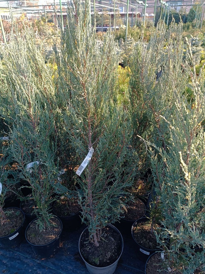 Один из самых узких, колоновидных, медленнорастущих сортов можжевельника. В возрасте 10 лет достигает 2-3 м в высоту. Побеги жесткие, расположены вертикально, плотно примыкают к стволу. Хвоя голубая, имеет форму чешуй, не колючая. Местоположение: солнце. Почва: требования к почве и влаге невысокие. Использование: для небольших приусадебных, каменистых и вересковых садов. Похожие товары