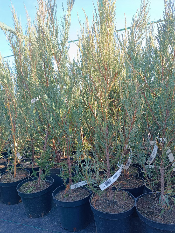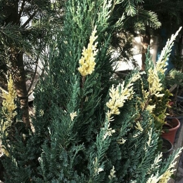 Очень декоративный вечнозеленый вариегатный скальный можжевельник. Свое название «Blue Ivory» «Голубая слоновая кость» сорт получил благодаря необычному внешнему виду. Вертикальнорастущий, узкоколонновидный сорт с пестрой окраской. Высота взрослого растения 2-3 м, диаметр 0,5-0,7 м. Скорость роста довольно высокая. Ежегодный прирост составляет в высоту в среднем 15-20 см, в ширину — 5 см. Хвоя не колючая, густая, чешуйчатая, серебристо-голубая, с характерными светло-кремовыми пятнами, равномерно расположенными на побегах. Новые приросты побегов — сливочно-белые. Кремовые побеги контрастируют с голубовато-синей хвоей. В зимний период имеет более насыщенный цвет. Светолюбив, допускается небольшое затенение, хорошо растет на свежих, хорошо дренированных, не слишком плодородных, почвах, выносит засоление. Морозостойкий сорт. Но, в ранневесенний период, когда светит яркое солнце, а почва ещё не оттаяла, у молодых растений возможен ожог хвои. Для предупреждения солнечных ожогов растения необходимо 'притенить’ в январе—феврале. Снять укрытие можно после того, как оттает почва. Сделать это лучше всего в пасмурный, безветренный день. Также в снежные зимы ветки могут быть сильно изогнуты и даже поломаны под тяжестью снежного покрова. В качестве профилактики таких неприятностей поздней осенью ветви нужно связать вместе. В таком виде растение переживет любые снегопады. В год посадки растение чаще поливают, т.к. корневая система компактна и не способна самостоятельно потреблять влагу и питательные вещества из грунта. В последующие годы желательно 1-2 раза в неделю производить полив в засушливый сезон, особенно это касается молодых растений Похожие товары