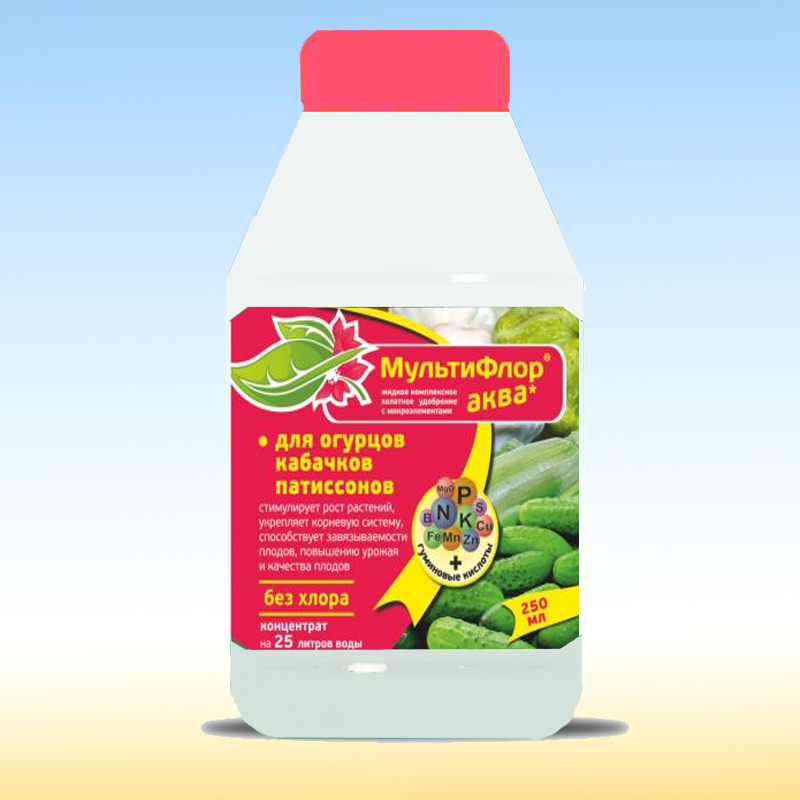 Жидкое комплексное хелатное минеральное удобрение с микроэлементами и гуминовыми кислотами для подкормки огурцов, кабачков, патиссонов. Объем 250 мл Универсальное удобрение для огурцов, кабачков, патиссонов применяется на протяжении всего вегетационного периода растений для корневой или листовой подкормки. В ранние фазы развития растения наиболее эффективным будет сочетание поливов и опрыскиваний растений подкормочным раствором. Применение удобрения стимулирует рост, укрепляет корневую систему и иммунитет растений. Способствует формированию завязей, повышению урожая и качества плодов. Массовая доля питательных веществ, %: N- 4,0; Р-4,0; К-6,0; м/э (Кобальт, Бор, Медь, Марганец, Молибден, Цинк); Гуминовые кислоты - 0,7, янтарная кислота. Похожие товары