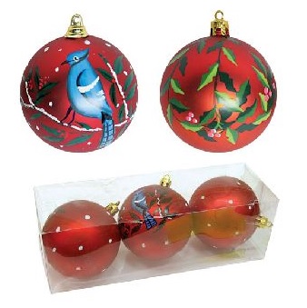 Н68039 Шар мат. птицы/ягода (3шт./кор.) 8см.