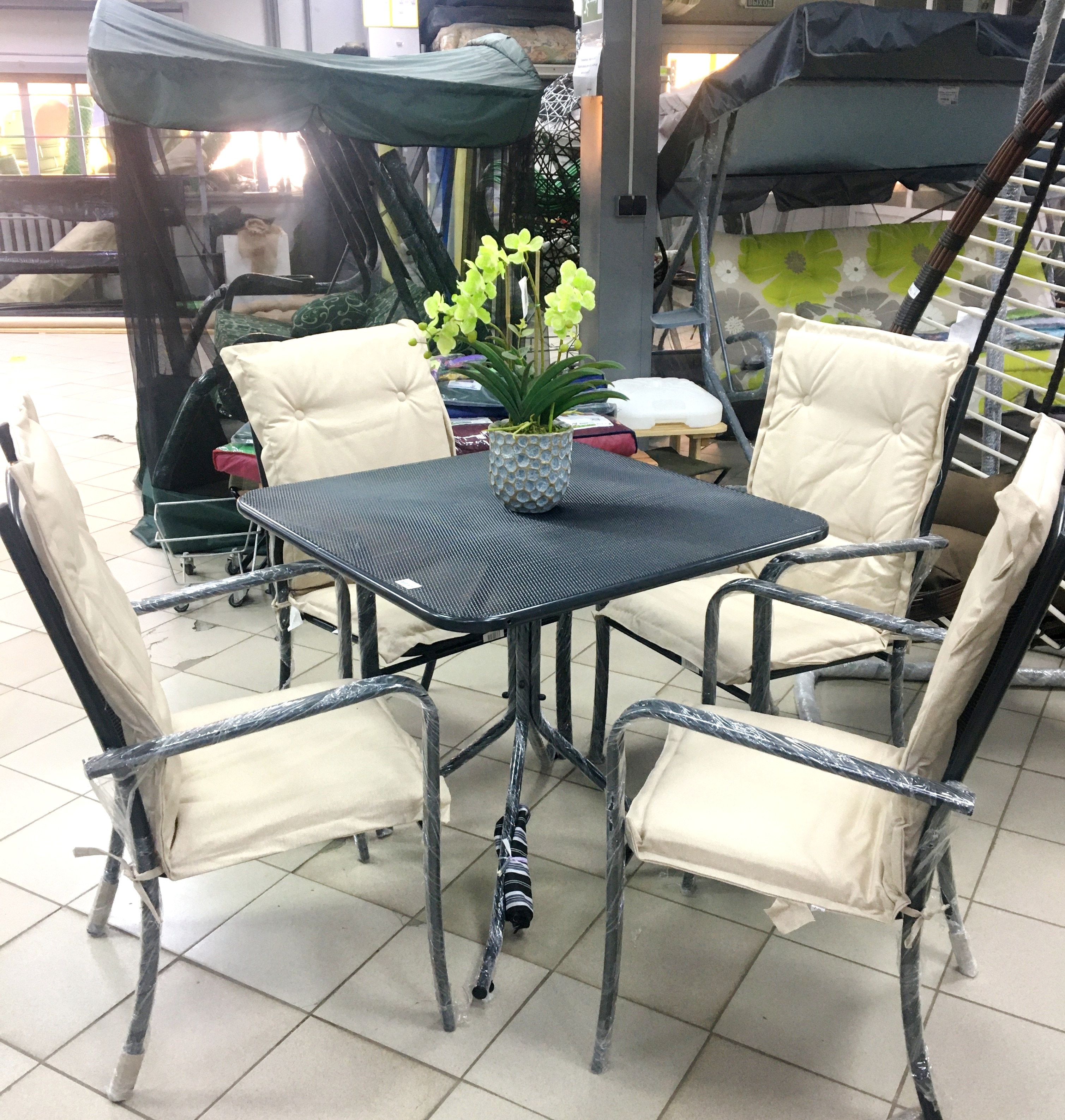 Набор мебели НИЦЦА (4 стула+стол, каркас антр.., подушки беж.) арт.C935/94