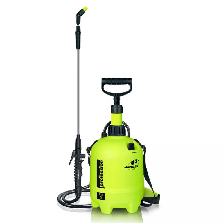 Опрыскиватели Profession объёмом от 5 до 12 литров предназначены для опрыскивания средствами защиты растений, гербицидами и жидкими удобрениями. Могут быть использованы в садах, огородах, на плантациях и лесопитомниках. Опрыскиватели Profession, а также все его детали и части проходят многоступенчатый контроль качества в процессе производства. Общий объём: 7,83 л. Рабочий объём: 7,0 л. Давление: 0,4 МПа. Вес нетто: 1,8 кг. Высота опрыскивателя: 470 мм. Длина телескопической штанги: 80-135 см. Особенность: Длинная телескопическая штанга опрыскивателя имеет дополнительные уплотнения, предохраняющие её от песка и загрязнений. Все детали изделия изготовлены из высокопрочных и химстойких материалов. Оборудование: - телескопическая штанга c регулируемой форсункой МR1,5 - дозирующий клапан с возможностью блокировки положения - воронка - силиконовая смазка - цепной замок телескопической штанги - R107 - прокладки телескопической штанги: R108, R106, R47с - форсунка МR1,0 - внутренний фильтр - предохранительный клапан давления - шланг, бронированный оплеткой - переносной ремень . Похожие товары