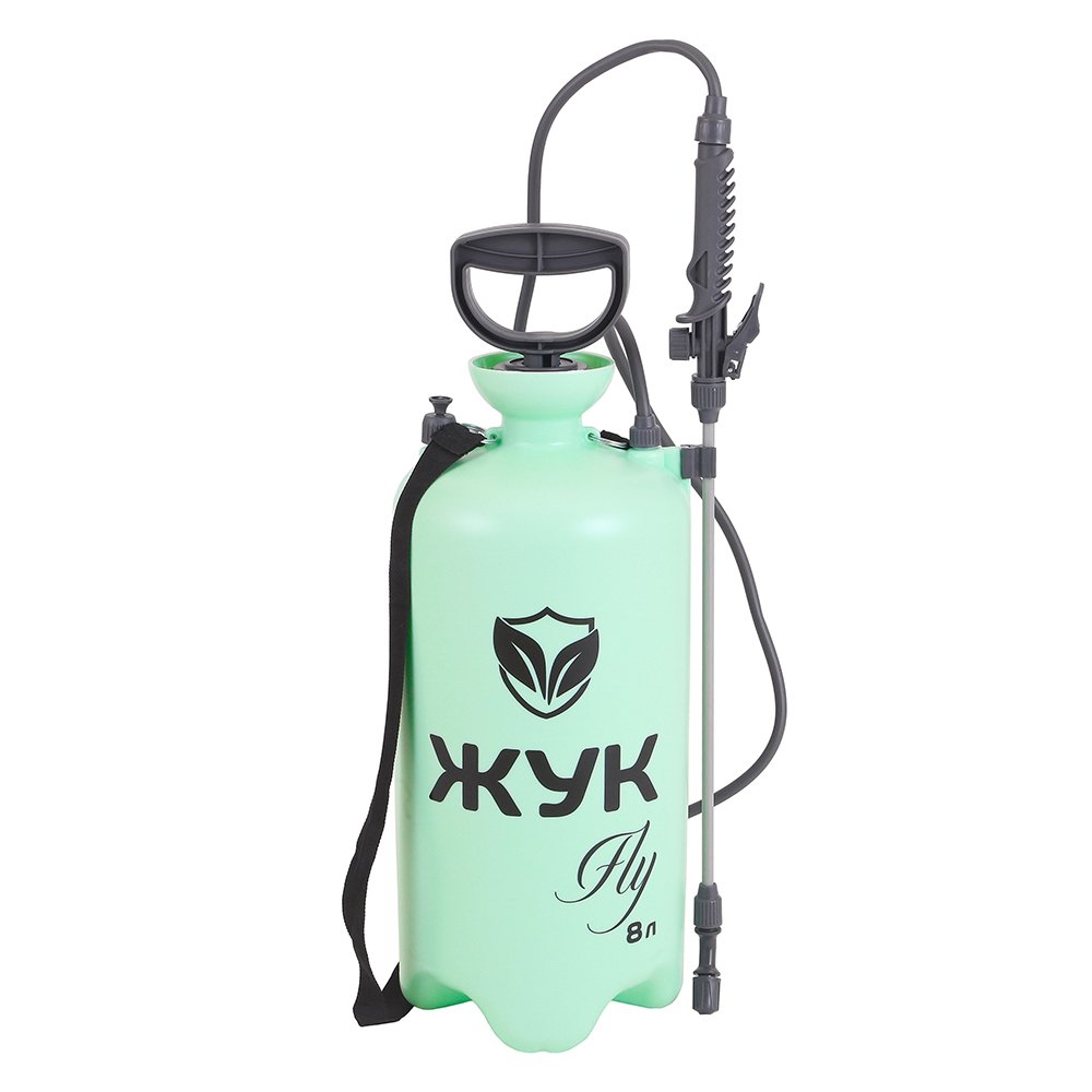 Опрыскиватель Жук Fly предназначен для обработки растений, кустарников, деревьев средней высоты, огорода, а также для мытья стен, стекол и других хозяйственных работ. С помощью насоса создаётся давление в баке, распыл жидкости осуществляется нажатием на клавишу брандспойта. Предохранительный клапан срабатывает при избыточном давлении, что обеспечивает безопасность в процессе эксплуатации. Нетелескопический брандспойт имеет длину 600 мм. Фиксатор на брандспойте позволяет удобно работать без удерживания кнопки. Регулировка струи дает возможность выбирать подходящий режим для защиты растений от вредителей или для полива - от сильной струи до легкого тумана. Для удобства работы и переноски предусмотрен наплечный ремень на кольцах. Бак имеет цельнолитую заливную воронку, поэтому не требует дополнительного уплотнения для насоса. Похожие товары