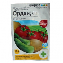 Незаменимое лекарство от болезней томатов, огурцов и картофеля. Преимущества: Уникальное сочетание двух активных веществ с различным механизмом действия. Обладает профилактическими, защитными и искореняющими свойствами. Не вызывает привыкания у возбудителей болезней. Вредители сада и огорода, а также болезни, которые они приносят, не позволяют получать высокие урожаи овощных культур ни в домашних, ни в хозяйственных условиях. Их негативному воздействию подвержены практически все овощи, но особенно сильно страдают томаты. Один только фитофтроз подчас создает так много проблем, что решать их приходится полным уничтожением больших посадочных площадей. Чтобы свести к минимуму все риски, связанные с болезнями, стоит подумать о средствах защиты растений. Одним из таких верных средств является Ордан. Этот препарат позволяет эффективно разбираться с уже существующими признаками негативного действия гриба, а также эффективно предупреждает его новое поколение. Благодаря уникальному химическому составу Ордан действует очень продуктивно и, что немаловажно, не вызывает привыкания у возбудителей, благодаря чему может применяться многократно без ухудшения результатов. Похожие товары