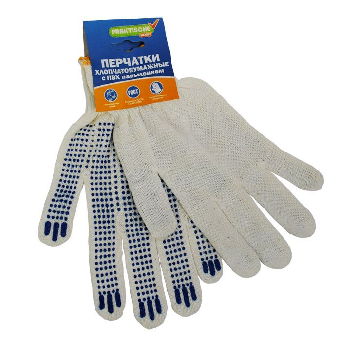 Перчатки Praktische Home, х/б, 3 нити, 10класс с ПВХ, Точка белые