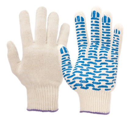РАБОЧИЕ ПЕРЧАТКИ ХБ с ПВХ вязаные (хлопчатобумажные с ПВХ покрытием) входят в группу средств индивидуальной защиты. Благодаря более высокому классу вязки кожные покровы рук более надёжно защищены от загрязнения и механических воздействий: ссадин, порезов, химических и тепловых ожогов. Перчатки изготовлены из натурального хлопка, что способствует свободному воздухообмену, не допускает потения рук и не стесняет движений пальцев. Специальное полимерное (ПВХ) покрытие обеспечивает надёжный захват, дополнительную стойкость перчаток к истиранию и защиту от скольжения, увеличивая срок эксплуатации перчатки, создает более устойчивое сцепление пальцев рук с деталями и предметами. Перчатки хб и хб с ПВХ покрытием рекомендуются к использованию при проведении механосборочных, сельскохозяйственных, строительных и других работ, связанных с физическим трудом. Похожие товары