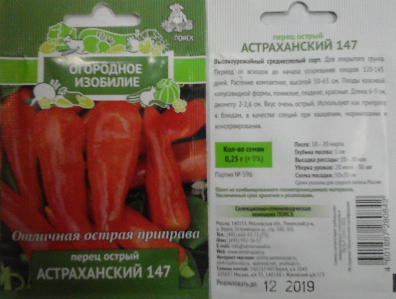Перец острый Астраханский 147 0,25гр. (Огород.изоб. Поиск)