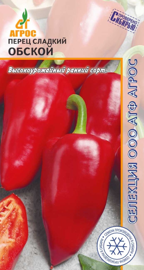 Раннеспелый полуштамбовый сорт. Плод конусовидный, средней величины, двух- и трехкамерный, средней массой 95 г. Окраска плода в технической спелости светло-зеленая, в биологической – красная. Сорт ОБСКОЙ урожайный, с отличными вкусовыми качествами. Рекомендуется для использования в свежем виде и в домашней кулинарии. Особенности выращивания: Рекомендуется выращивать в открытом грунте или под временными пленочными укрытиями. Рекомендуется выращивать рассаду без пикировки, что обеспечит более ранний сбор урожая. Похожие товары