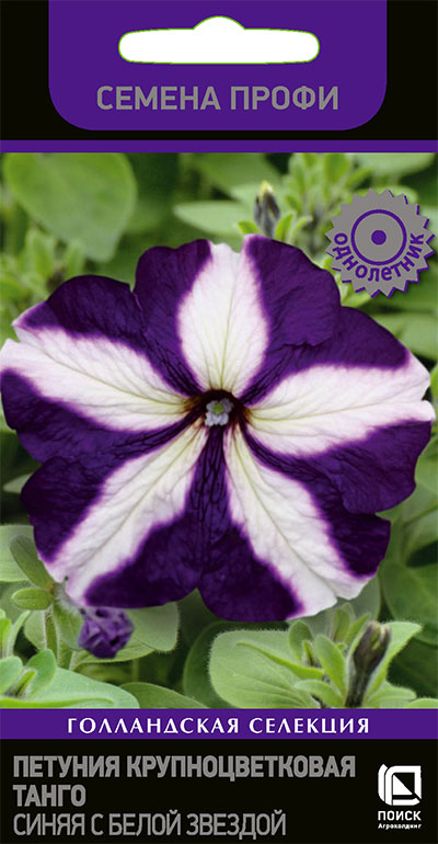 Петуния Танго Синяя с белой звездой крупноцветковая (грандифлора) (Семена Профи) 15шт (Поиск)