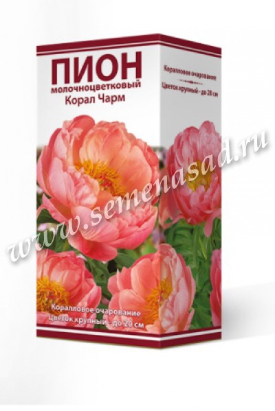 Пионы – травянистые многолетники с мощными мясистыми корнеклубнями, реже кустарники. Стебли до 100 см высотой. Цветки крупные одиночные, простые, полумахровые, махровые; белые, розовые, красные, реже желтые. Листья крупные рассеченные. Месторасположение: солнечный или полутенистый участок. Почва: умеренно сухая, свежая, богатая питательными веществами. Не переносит плотных почв. Посадка: весной или осенью, примерно за месяц до посадки готовят ямы 60х60х60 см. Делёнку сажают так, чтобы над почками был слой земли 3-5 см. При низкой или высокой посадке пионы не цветут! После пересадки сортовые качества проявляются на 2-3 год! Цветение: в первой половине лета. Использование: красивы в одиночных посадках, группами среди газона, в рабатках и смешанных посадках. Незаменимы в букетах и композициях. Корал Чарм - высота растения 95 см. Срок цветения ранний. Цветок полумахровый. Окраска цветка очень эффектная: сначала темно-кораллово-розовая, по мере роспуска меняет цвет до кораллово-персикового, в полном роспуске - светло-коралловая с белой каймой по краю лепестков. В конце цветения цветок становится светло-желтым, чуть розоватым. Цветок крупный - до 20 см. Похожие товары