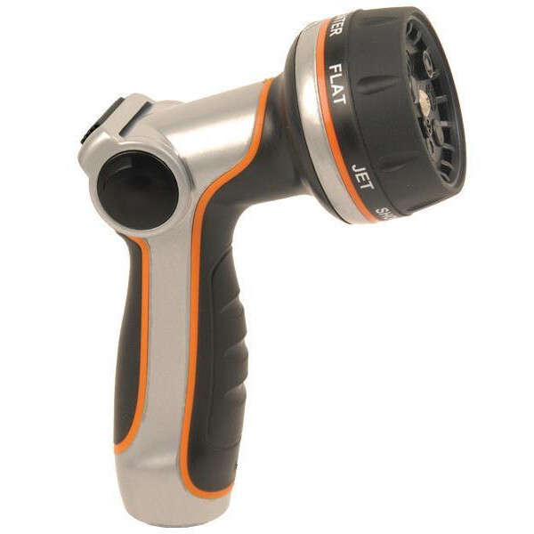 Пистолет распылитель металический регулируемый крепится на конце садового шланга и служит для превращения водяной струи из мощного и жесткого напора в мягкий распылённый душ или небольшой локальный дождь. С помощью пистолета для полива легко визуально отслеживать направление полива и регулировать дозировку воды – для прекращения подачи воды достаточно отпустить спусковой крючок. Это классическая модель для мягкого полива. Обеспечивается плавная регулировка струи от жесткой до распыления. Регулировка дальности полива Функция беспрерывной подачи воды Подключение к шлангу с помощью коннектора Похожие товары
