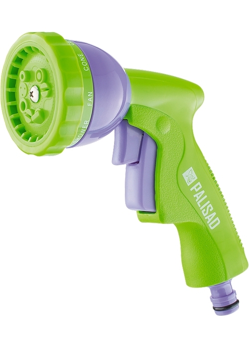 Пистолет-распылитель со штуцерной посадкой и удобным курком, расположенным спереди. Оснащен регулируемой форсункой, что обеспечивает девять режимов полива: плоско-вертикальную струю, струю под углом, душ, плоско-горизонтальную струю, конусное распыление, центральное распыление, жесткую струю, туман, сочащийся режим. Имеет 5-ступенчатый фиксатор курка для непрерывной работы. Предназначен для всех типов полива на дачных участках, в садах, парках и скверах, а также для очистки. Совместим со всеми элементами системы полива PALISAD и PALISAD Luxe. Корпус пистолета изготовлен из цинкового сплава, курок из прочного АБС-пластика, рукоятка залита резиной, что обеспечивает максимальный комфорт при работе с инструментом. Похожие товары