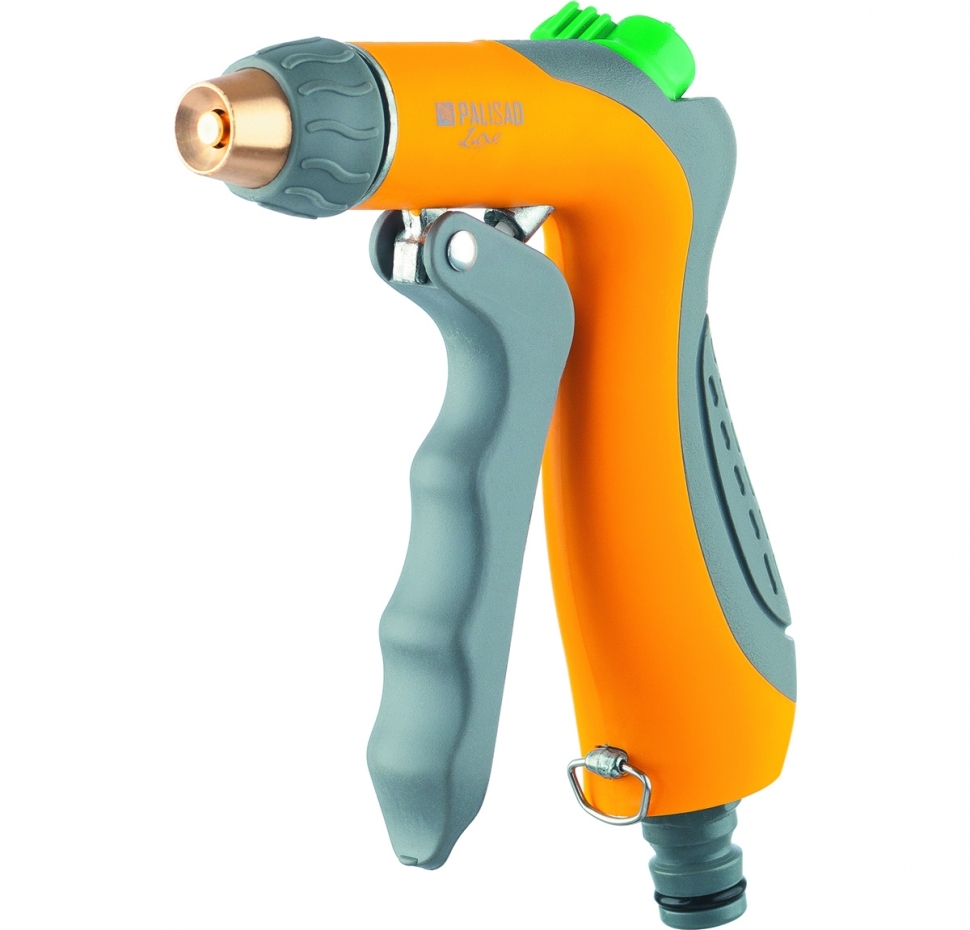 Пистолет-разбрызгиватель с курком спереди в современном исполнении из надежных металлических и пластиковых элементов с резиновыми вставками. Конструкция обеспечивает прочность и простоту в эксплуатации. Удобно держать в руке. Предусмотрена плавная регулировка напора: от сильной струи до мелкодисперсного распыления, в зависимости от поставленной задачи, также предусмотрена полная остановка подачи воды. Управление легко осуществляется с помощью одной руки. Совместим со всеми элементами системы полива «PALISAD LUXE» и «PALISAD». Похожие товары
