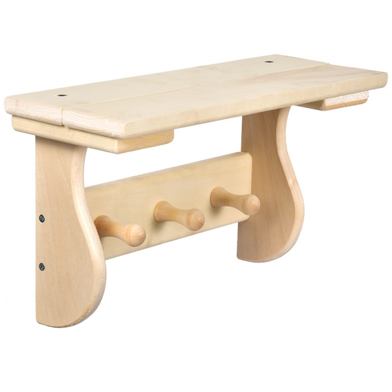 Полка с вешалкой, 3 рожка 35х20х15 см, липа "Банные штучки"