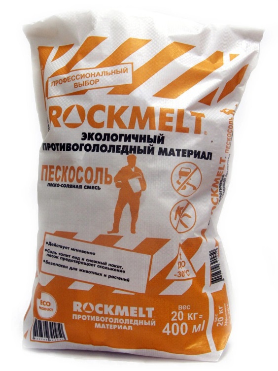 Противогололедный реагент Rockmelt Пескосоль (до -30C) (пак.20кг.)