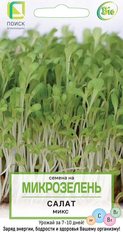 Приятный ореховый привкус Укрепляет иммунитет Ростки салата обладают мягким ореховым привкусом, их добавляют в бутерброды, салаты, зеленые коктейли, смузи. Такая добавка не только полезна, она способна придать привычному блюду особую пикантность и неповторимый вкус. Содержит фосфор, магний, цинк и кальций, йод и кобальт, много витаминов и полезных минералов. При регулярном употреблении в пищу можно избавиться от усталости, укрепить иммунитет и сердечную мышцу. В состав входят семена салата: Кучерявец одесский, Успех, Робин, Лолло росса. Похожие товары